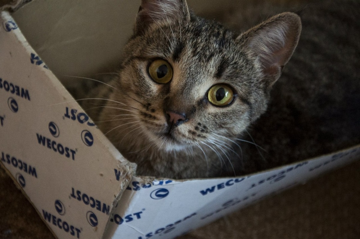 Описание: | Откликается на имя Плюшка. Полосатая, коричневато-серая (таби), с белым подбородком. Довольно худая, молодая, глаза жёлтые. Особая приметы: на брюхе небольшое еле заметное зелёное пятно. Нашедшему - вознаграждение. |